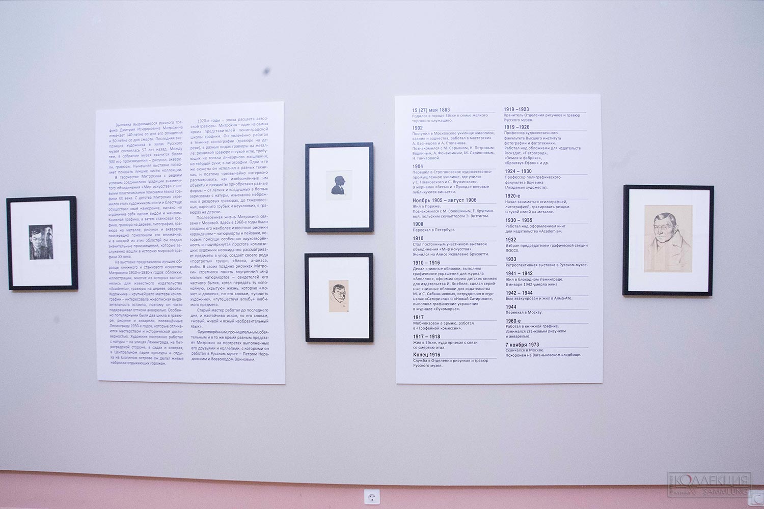 Дмитрий Митрохин с детства стремился стать художником книги и блестяще осуществил своё намерение, однако не ограничил себя одним жанром. В его творчестве соединились старые традиции знаменитого объединения «Мир искусства» и поиски нового пластического языка графики ХХ века. В собрании Русского музея хранится более 900 его произведений – рисунки, акварели, гравюры. Выставка покажет лучшие листы коллекции.