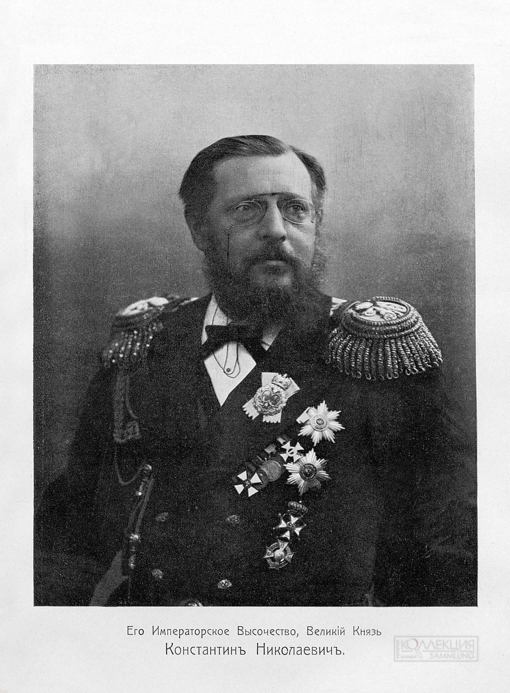 - Фотографический портрет Великого князя Константина Николаевича. Неизвестный фотограф. Картон, альбуминовый отпечаток, 13,4 х 9,5 см. Российская Империя, Санкт-Петербург, до 1874 года. Государственный исторический музей, Инв. № ОК 3960/7 (Номер ГИМ: ГИМ 51122/7).